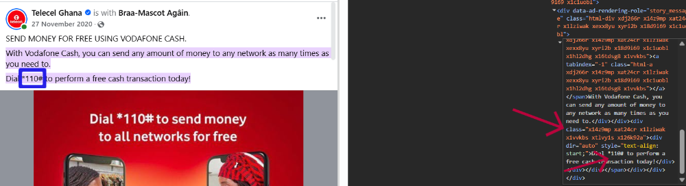 the first result on the right side has no *110# in the content so the only faceook results has it, thats why its been written in the AI overview.